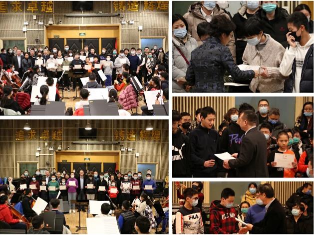 少年管弦乐团首席指挥谭利华勉励全体学员珍惜这难得的学习机会。这个排练厅是中国交响乐界的圣殿,是全国音乐人向往的地方。交响乐是合作的艺术,全体学员一定要有合作精神,要有纪律性,更要有认真刻苦的学习态度。只要刻苦努力地跟着各位老师学习,就一定会实现自己的音乐梦想,肩负起未来中国交响乐事业的历史使命