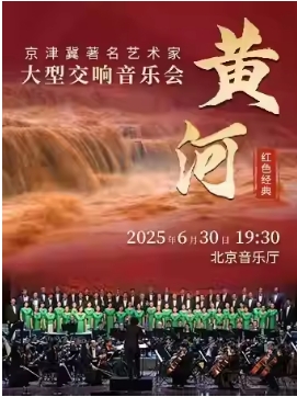 京津冀著名艺术家大型交响音乐会《黄河》 时间:2025.06.30 周一 19:30 场馆:北京市 | 北京音乐厅 票价:100/180/280/380/580/880 微信订票:18515362586 电话订票:010-66552100,010-66552258