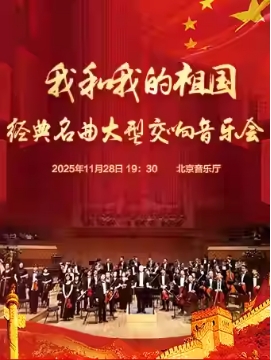 我和我的祖国——经典名曲大型交响音乐会 时间:2025.11.28 周五 19:30 场馆:北京市 | 北京音乐厅 票价: 180/280/380/580 微信订票:18515362586 电话订票:010-66552100,010-66552258